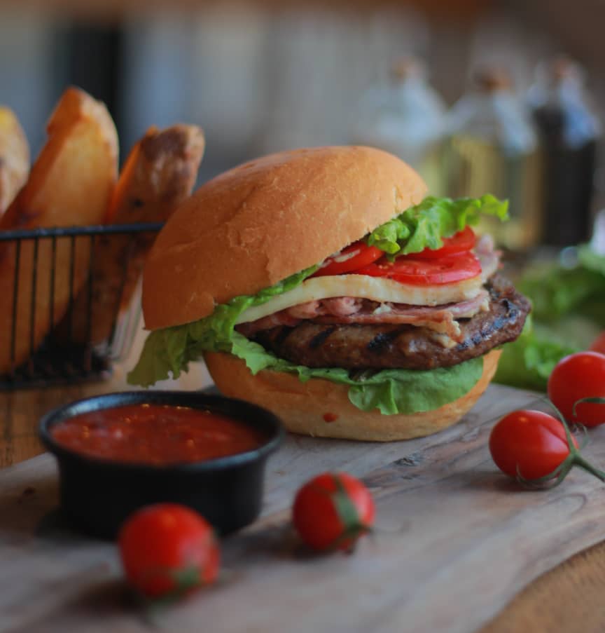 برگر ،بیکن ،پنیر ویژه ،قارچ ،سیب زمینی