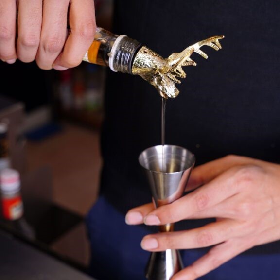 یک شات اسپرسو، شیر گرما دیده، عسل