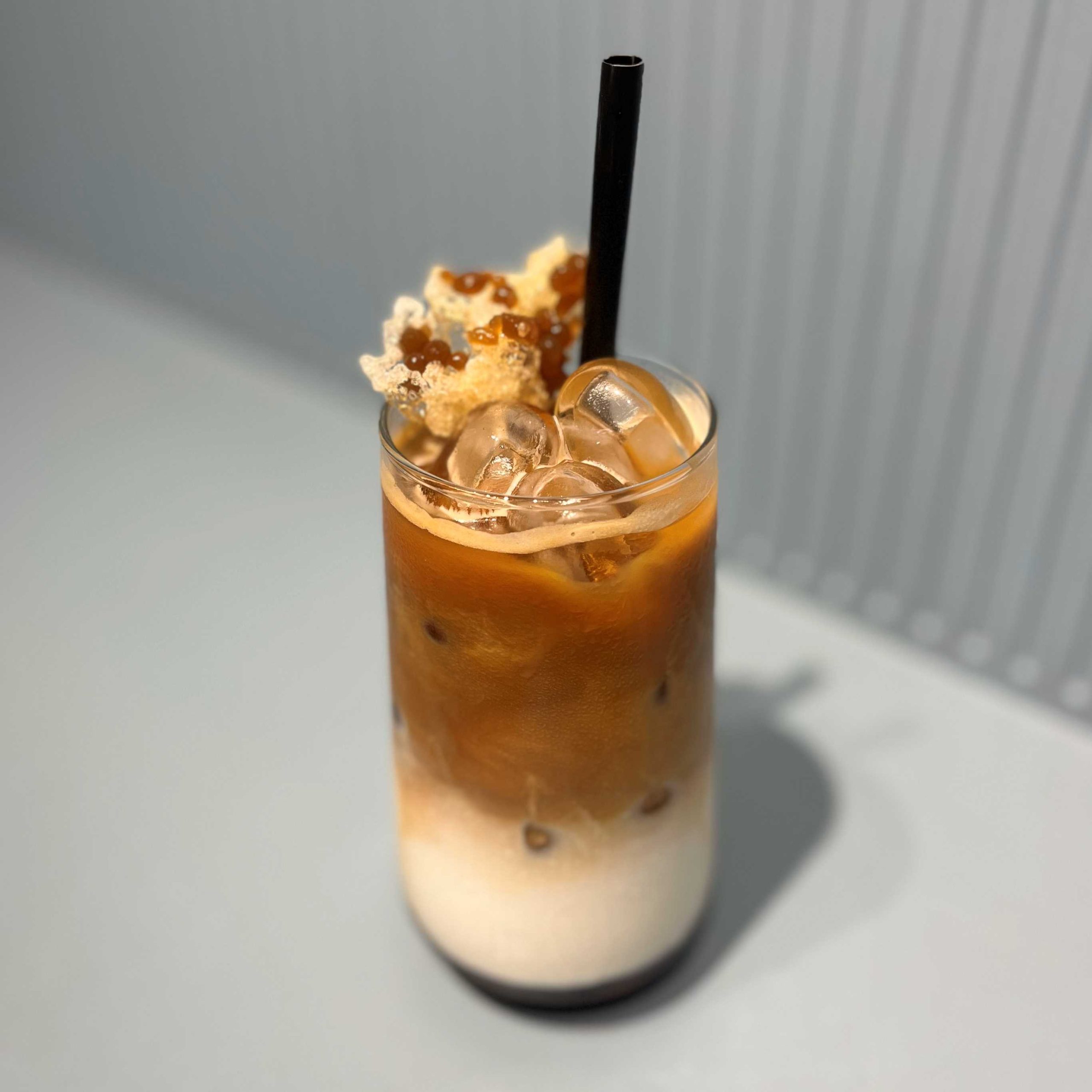 اسپرسو سینگل شات، شیر، سیروپ کارامل
